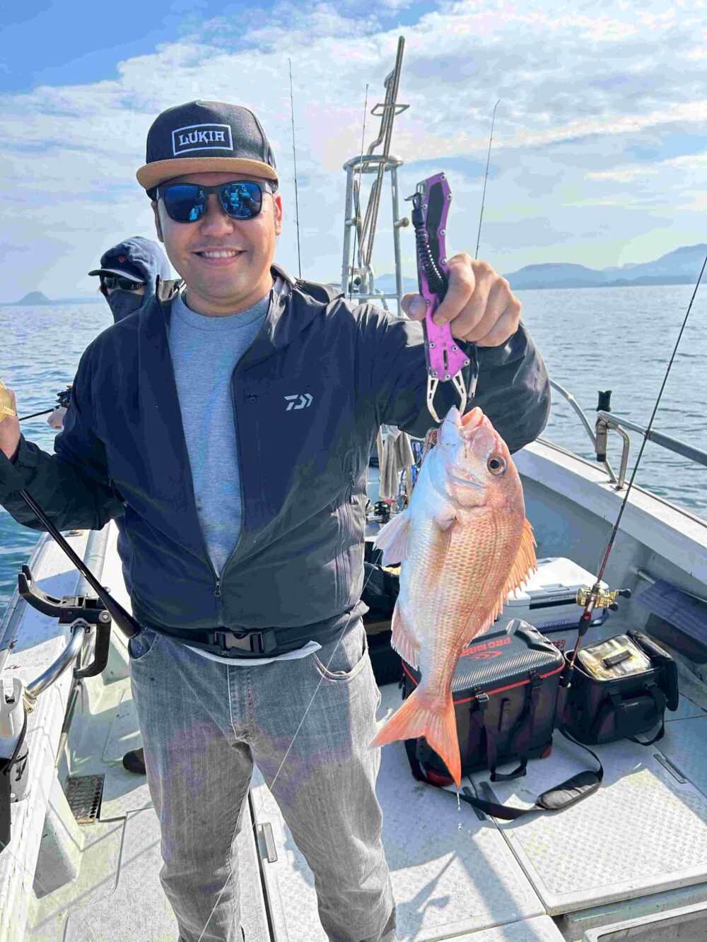 朝一はうねりで厳しい状況でしたが、ポイント移動後はうねりも無く本命ゲットしてもらえました。鯛ラバでは美味しいサイズの😋真鯛も釣れて良かったです。